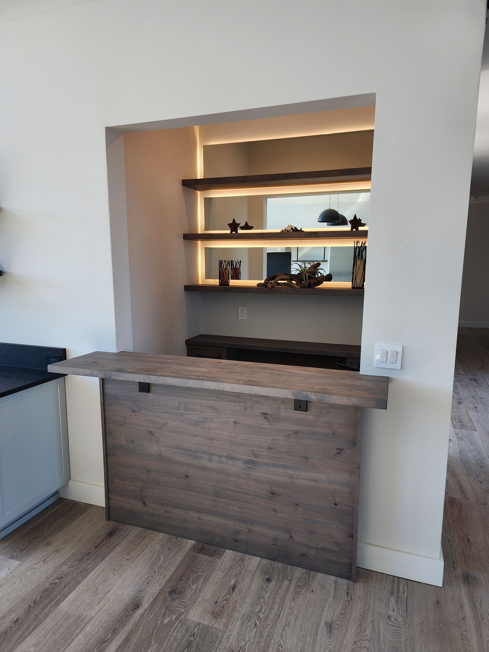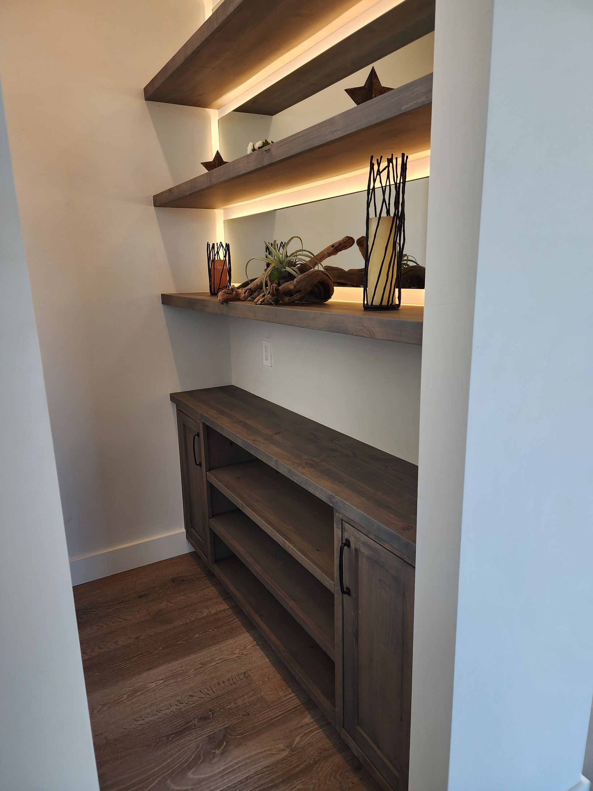 Our custom cabinet services focus on designing and building cabinets that fit your space perfectly. Whether for the kitchen, bathroom, or elsewhere, our cabinets are not only functional but also add to the overall aesthetic of your home.